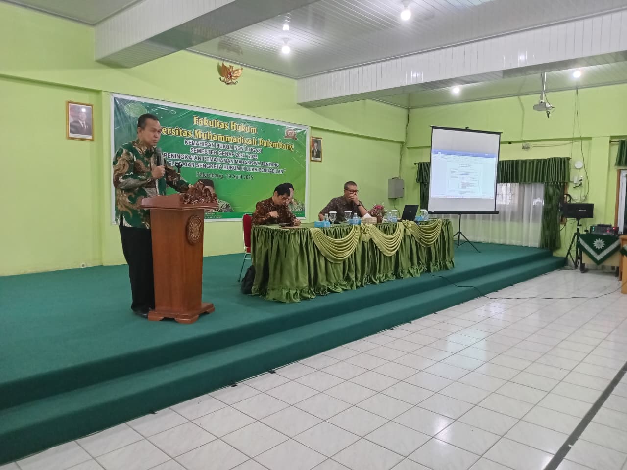 Palembang, 11 April 2024 Fakultas Hukum Universitas Muhammadiyah Palembang melaksanakan kegiatan Kuliah Umum Non Litigasi Semester Genap Tahun Akademik 2024/2025 dengan Tema ” Peningkatan Pemahaman Mahasiswa tentang Penyelesaian Sengketa diluar Hukum Pengadilan “