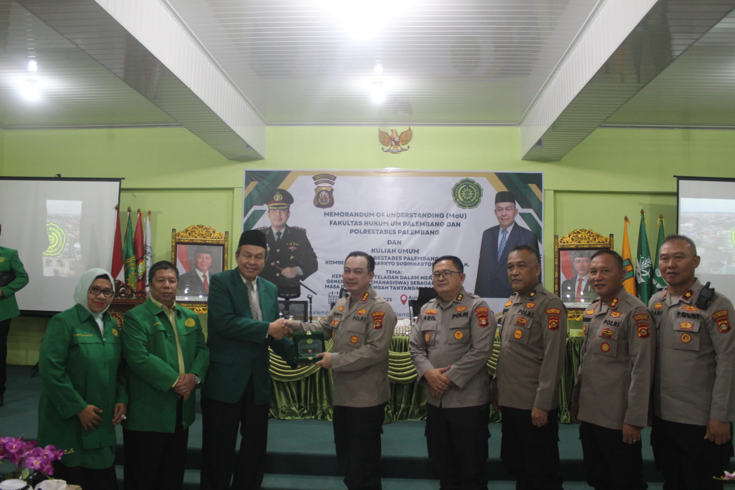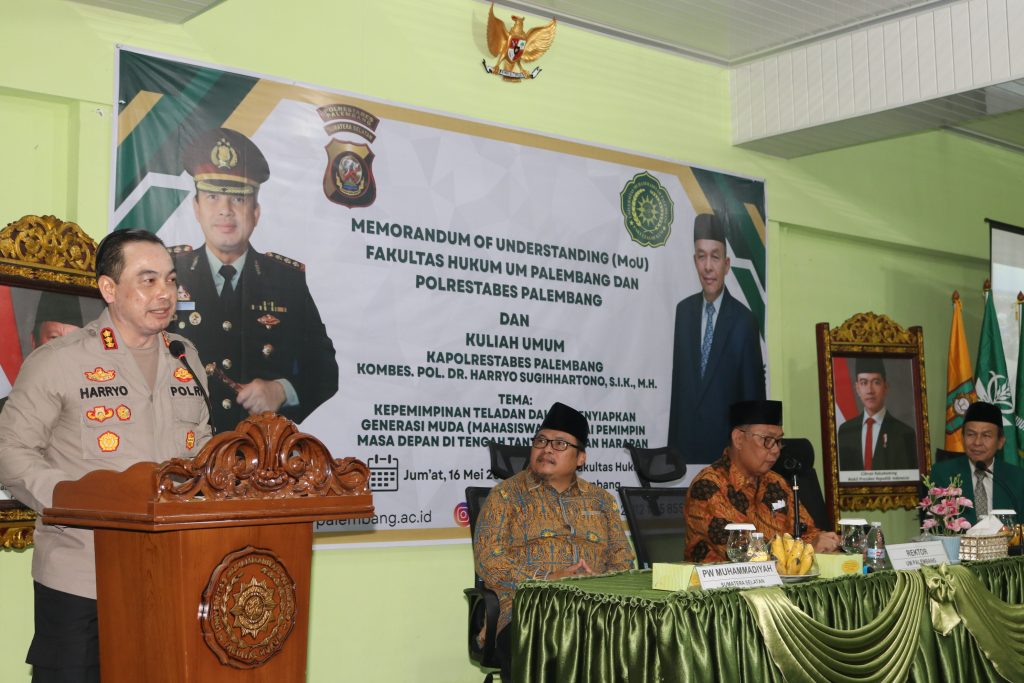 Fakultas Hukum Universitas Muhammadiyah Palembang jadin kerjasama Memorandum of Understanding (MoU) bersama Kepolisian Resor Kota Besar (Polrestabes) Palembang, pada Jumat 16 Mei 2025 di Aula Fakultas Hukum.