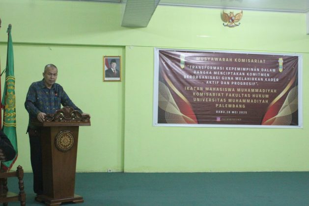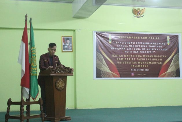 Palembang, 28 Mei 2025, ikatan Mahasiswa Muhammadiyah (IMM) Pimpinan Komisariat Fakultas Hukum Universitas Muhammadiyah Palembang menggelar Musyawarah Komisariat (Musykom) dengan tema “Transformasi Kepemimpinan dalam Rangka Menciptakan Komitmen Berorganisasi Guna Melahirkan Kader Aktif dan Progresif”, pada Rabu, 28 Mei 2025.